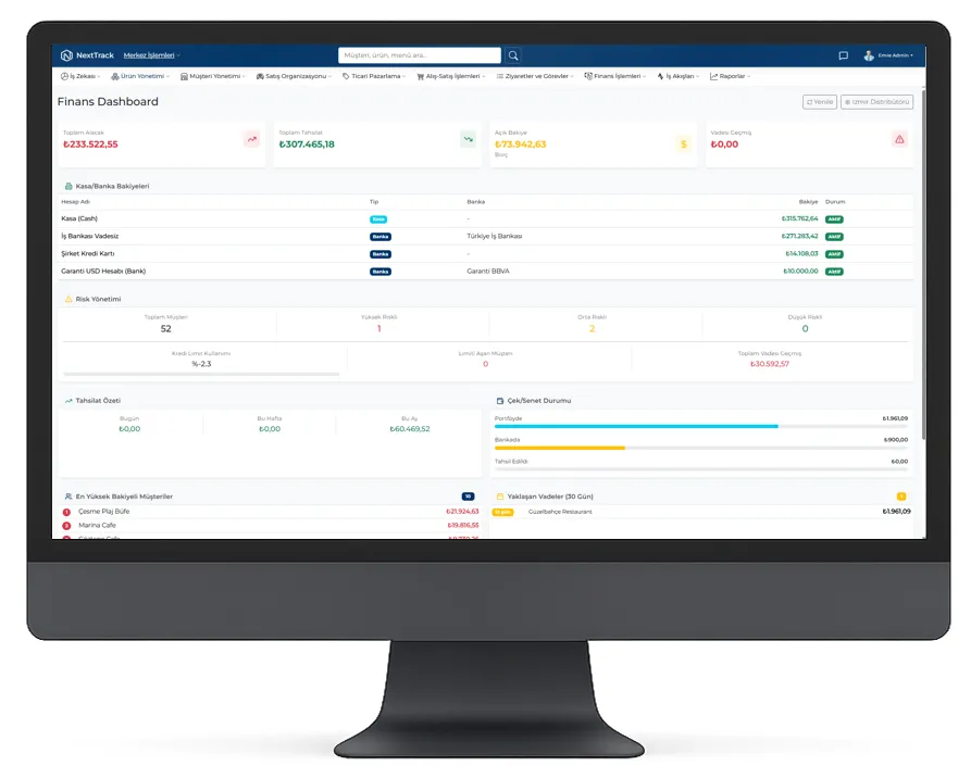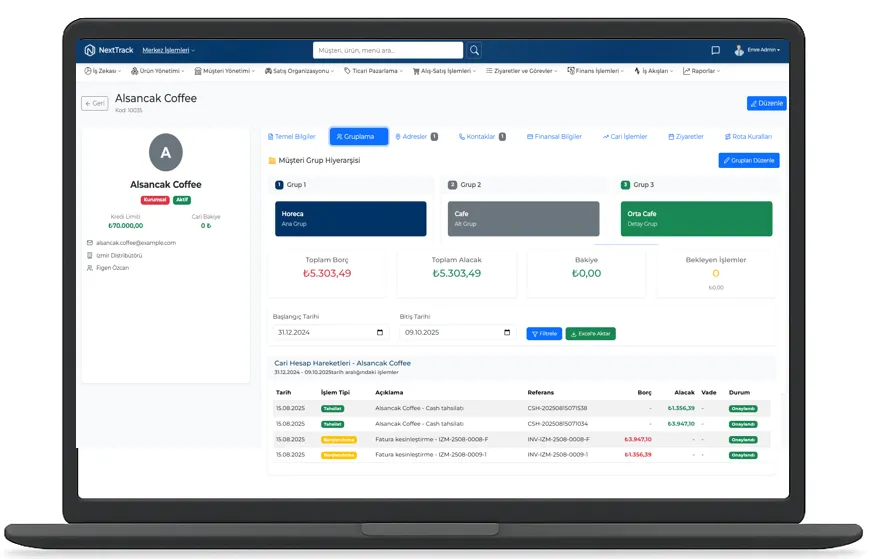Ülke genelinde faaliyet gösteren distribütörler, bölge bazlı satış ekiplerini, depo operasyonlarını ve müşteri portföylerini NextTrack üzerinden yönetir. Merkez ofis ile saha arasındaki veri akışı kesintisiz olarak sağlanır.