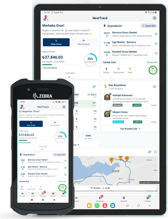 Online & offline sipariş, AI destekli rota planlama, 360° müşteri görünümü, çoklu ödeme yöntemi ve POS entegrasyonu.