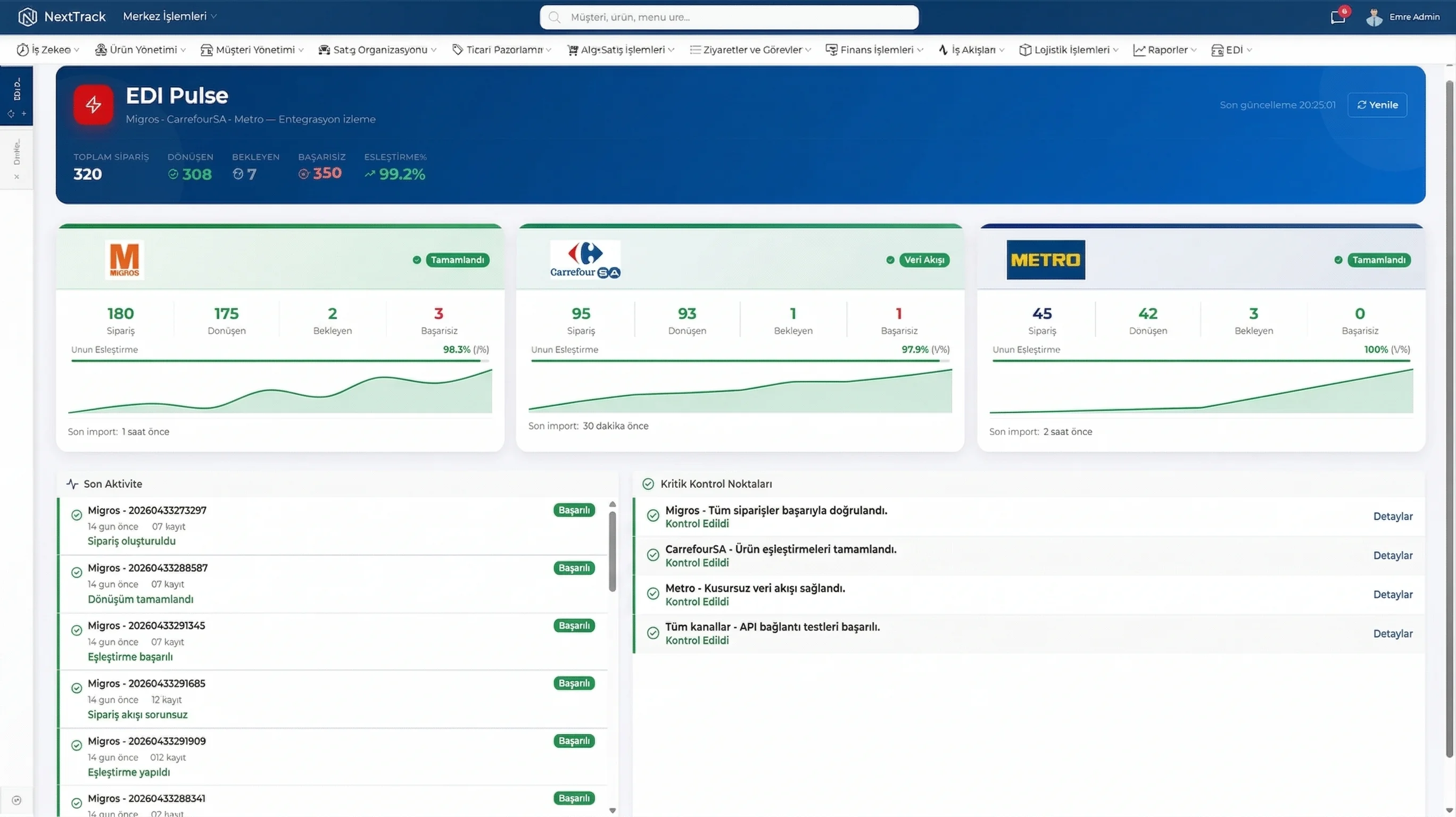 FMCG distribütörleri için zincir mağaza entegrasyonu neden kritik? EDI ile sipariş alma, ürün eşleştirme ve veri akışı süreçlerini tek panelden yönetin.